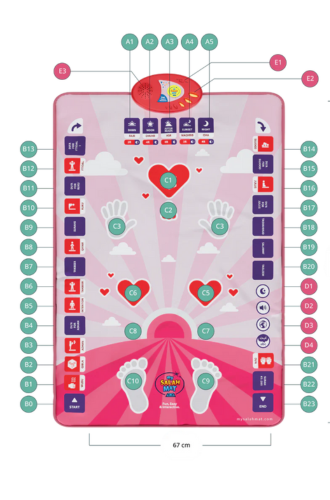 - Let the mat’s audio guidance play often; kids learn best when they hear and repeat.