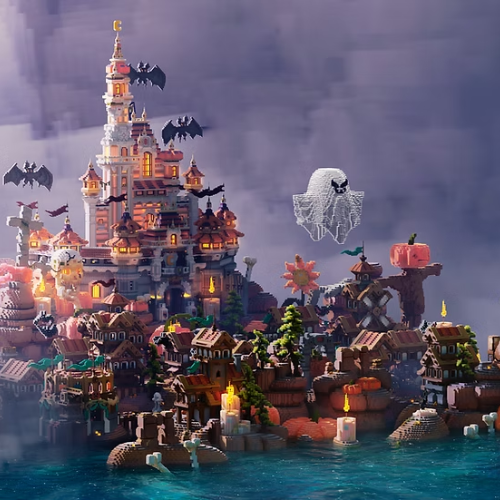 Because of its Halloween theme, the dark colors, magical touches, and mysterious castle vibes. This map captures the spooky, festive mood. It’s a fun way to decorate your world for the Halloween season, host a spooky adventure for friends, or just wander around and enjoy the atmosphere.