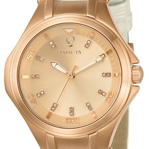 Minimalist in diamonds but impactful in design, the Invicta Gabrielle Union Watch delivers statement elegance through simplicity. The rose gold-tone case and dial create a warm, refined palette, while the white leather band introduces soft contrast. With 0.09 carats of genuine diamonds, this piece adds just the right touch of sparkle to a clean and modern design. Protected by a Flame Fusion Crystal, the metal dial stays crisp and clear throughout the day.