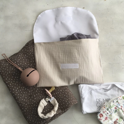 You can toss in everything from spare onesies, diapers, bodysuits, and bibs, then slide it right into your baby bag, knowing spills won’t ruin the rest of your stuff. It is made by hand in Spain with soft cotton on the outside and a waterproof interior. It’s easy to clean, just cold wash and air dry, and it feels thoughtful and well-made.